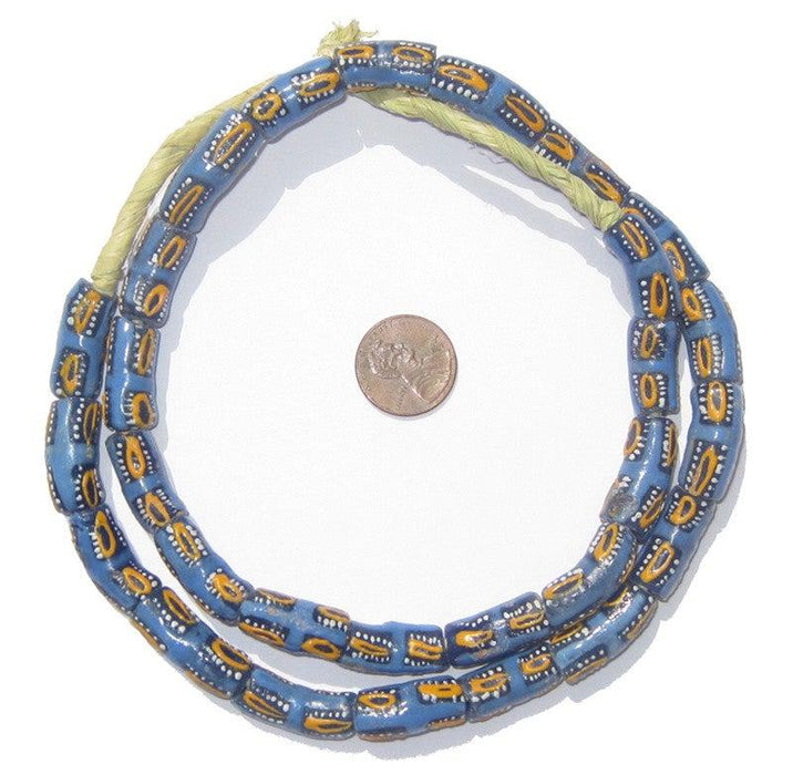A beautiful strand of powder glass African beads, made by the people of Krobo Mountain ( Ghana , West Africa ), reproducing old Venetian FANCY trade beads. Made from bottles and other glass items that are turned into powder, then poured into molds in order to create this nice looking drum shaped beads. Decorations on the beads are made with a paste made of colored glass powder and water, which is applied using a thin wooden stalk. They are cooked a second time to fix the decor. The beads are handmade.