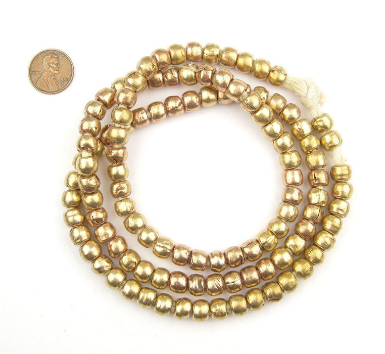 Here is a beautiful strand of Ethiopian Brass Round Bicone from Africa. Each bead is handmade individually. The strand is a long approx. 28", with beads measuring 8 mm in diameter.