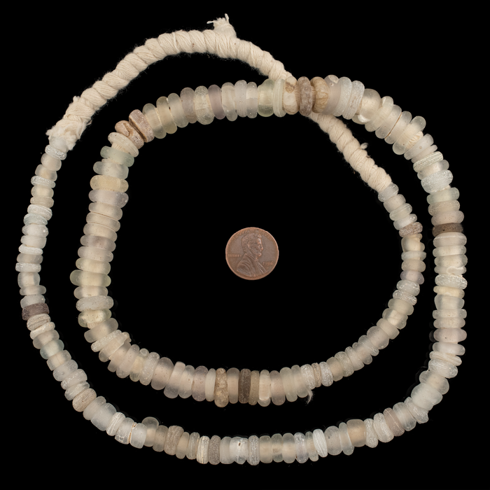 Fabulous strand of old annular wound trade beads also known as "Dutch Donuts". These african trade beads have traveled at least three continents and have graced numerous owners. Beads may have small chips or corrosion due to their age and extensive use.