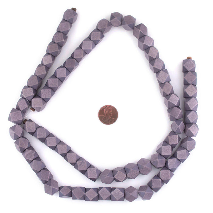 Grey Diamond Cut Natural Wood Beads (12mm)