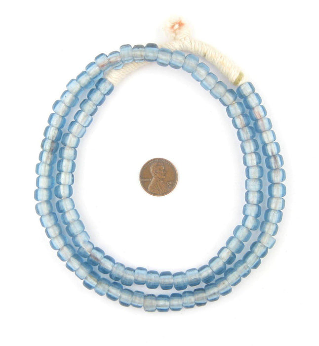 Take a look at these beautiful sky blue padre beads. Made from Czech glass, padre beads such as these have been traded in African since as early as the late 1800 - early 1900's. Individual beads measure approximately 6mm wide and 9mm in diameter. Versatile Beads. Get your strand today!