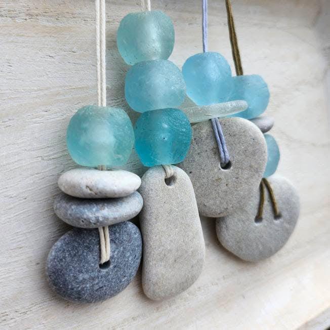 The process of making the stone and sea glass jewelry sparks my artistic spirit and is very meditative for me. I enjoyed making them so much that I decided to continue making necklaces to share with others as well. I started selling them wholesale to small gift shops in New England and then last year I opened an Etsy shop too so I could share my jewelry with more people.