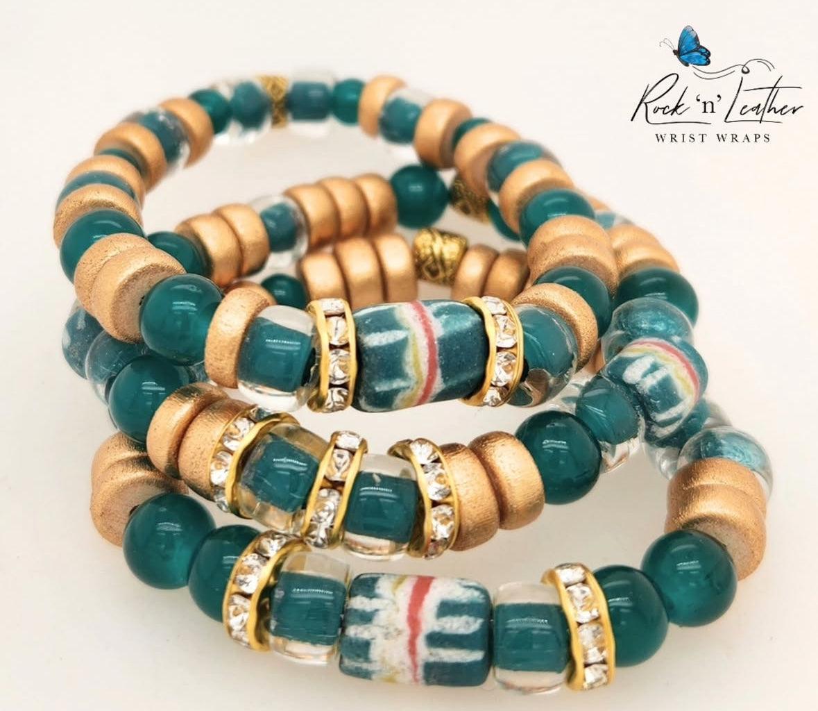 What started with 6mm round gemstone beads, evolved into using different types of beads for my wrap bracelets. I started using fire-polished beads and adding metals to the mix. That led to 8mm gemstones as focals for the wraps and eventually, I started to make the coordinating stretchy bracelets with 10mm beads to match! As I dove deeper into the meanings and properties of the gems, the curiosity to see what else I could find locally led me to bead shops and eventually to my first Bead Show! That’s when my eyes were filled with the most amazing beads and focals I could imagine! I started to experiment with so many different bead combinations and decided to make all my pieces one-of-a-kind so everyone could have their own unique design.
