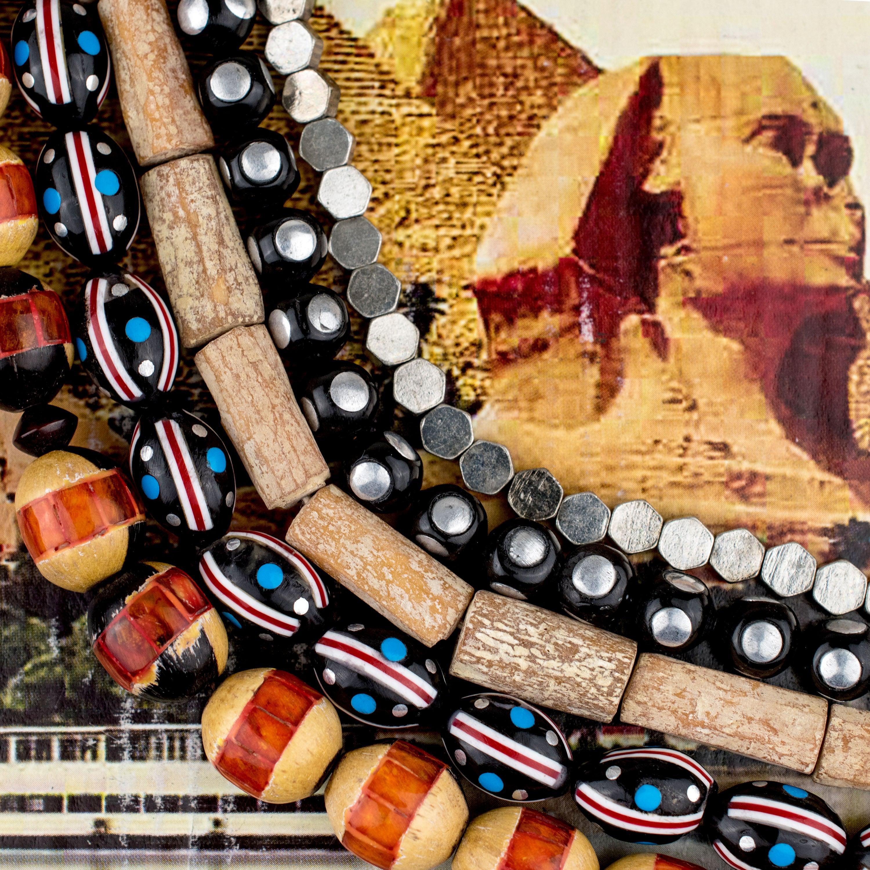 Red, White & Blue Inlaid Arabian Prayer Beads (14x9mm)
