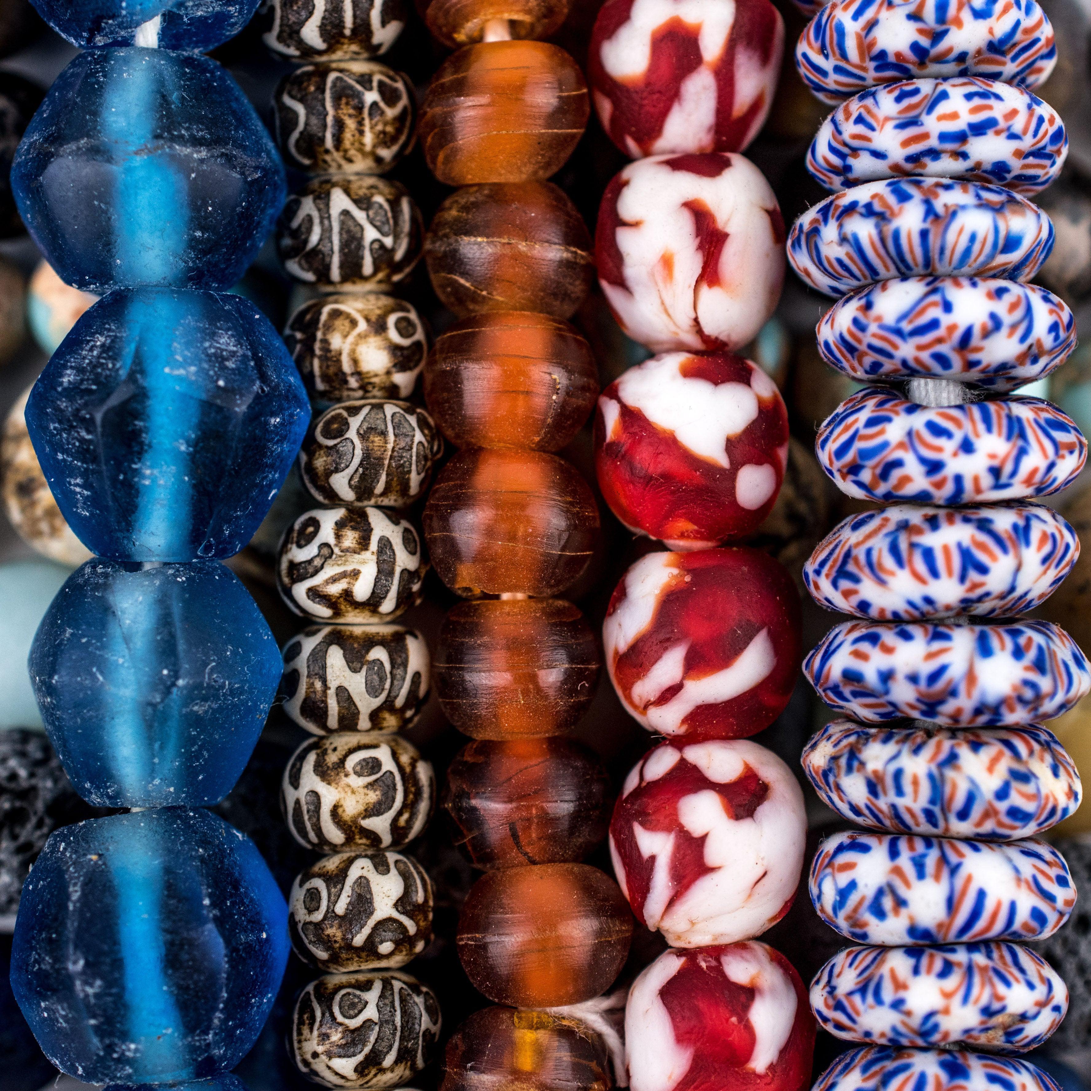 Chevron Fused Rondelle Recycled Glass Beads (14mm)