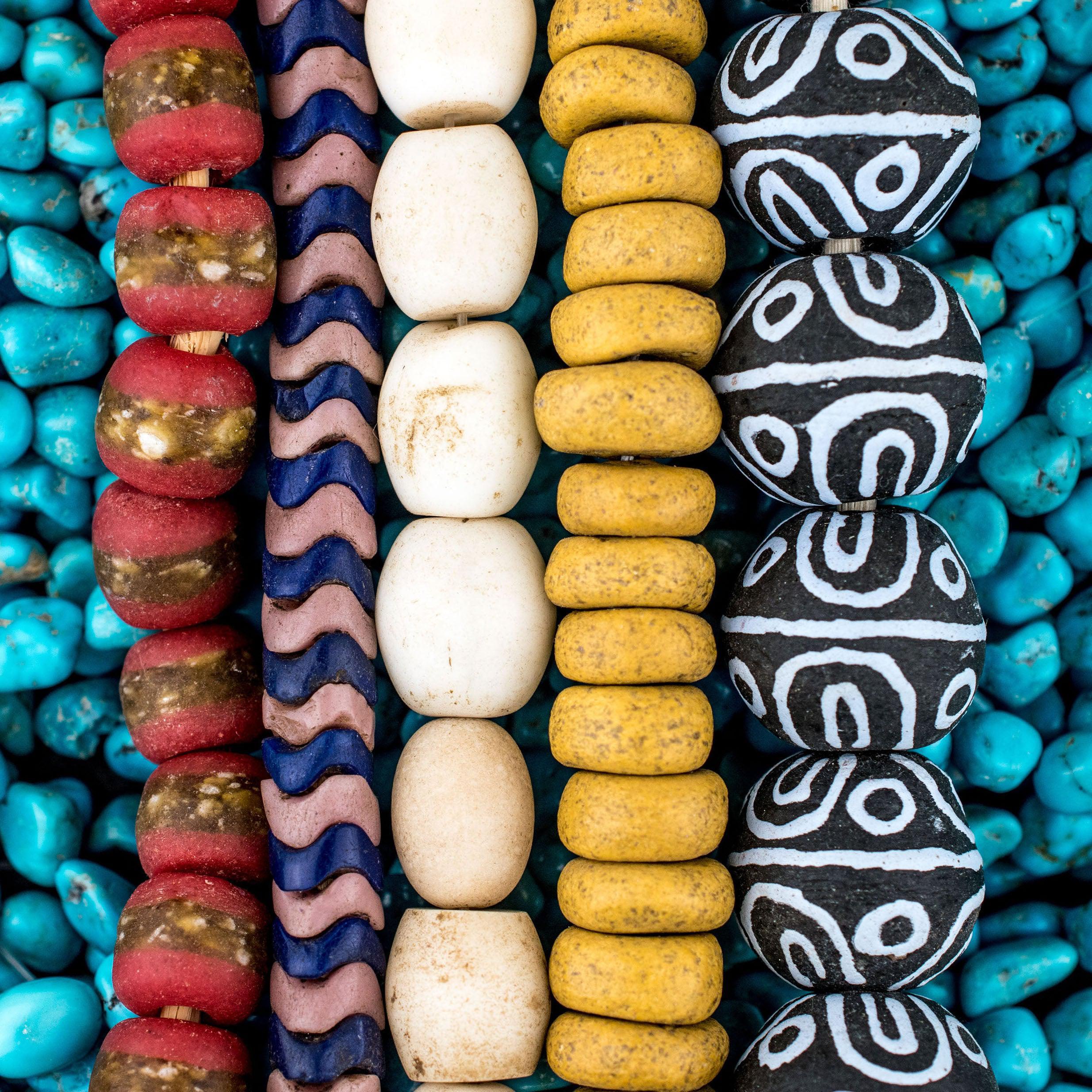 Jumbo Painted Krobo Glass Beads (Tribal Pattern)