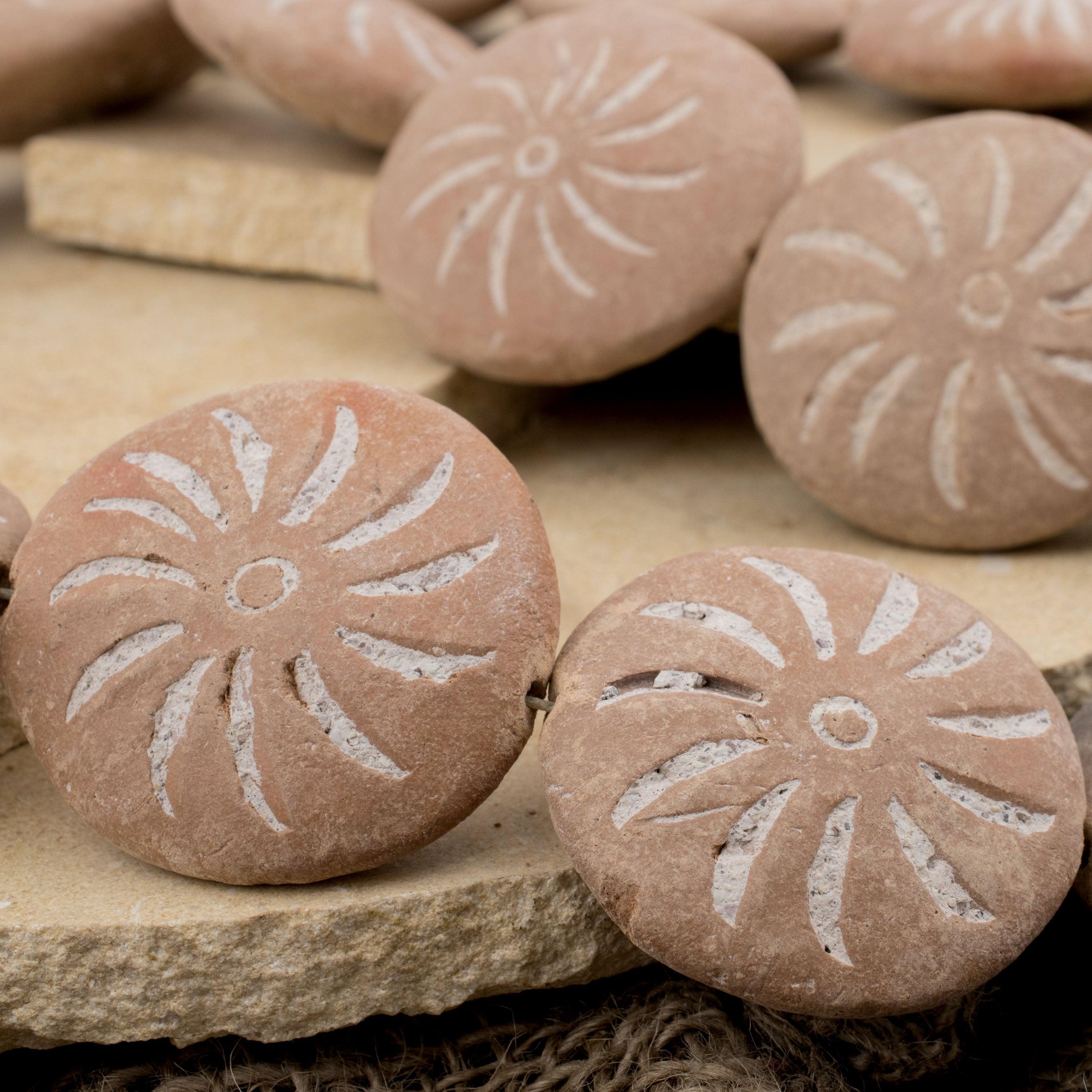 Striped Natural Terracotta Mali Clay Medallions (17x45mm)