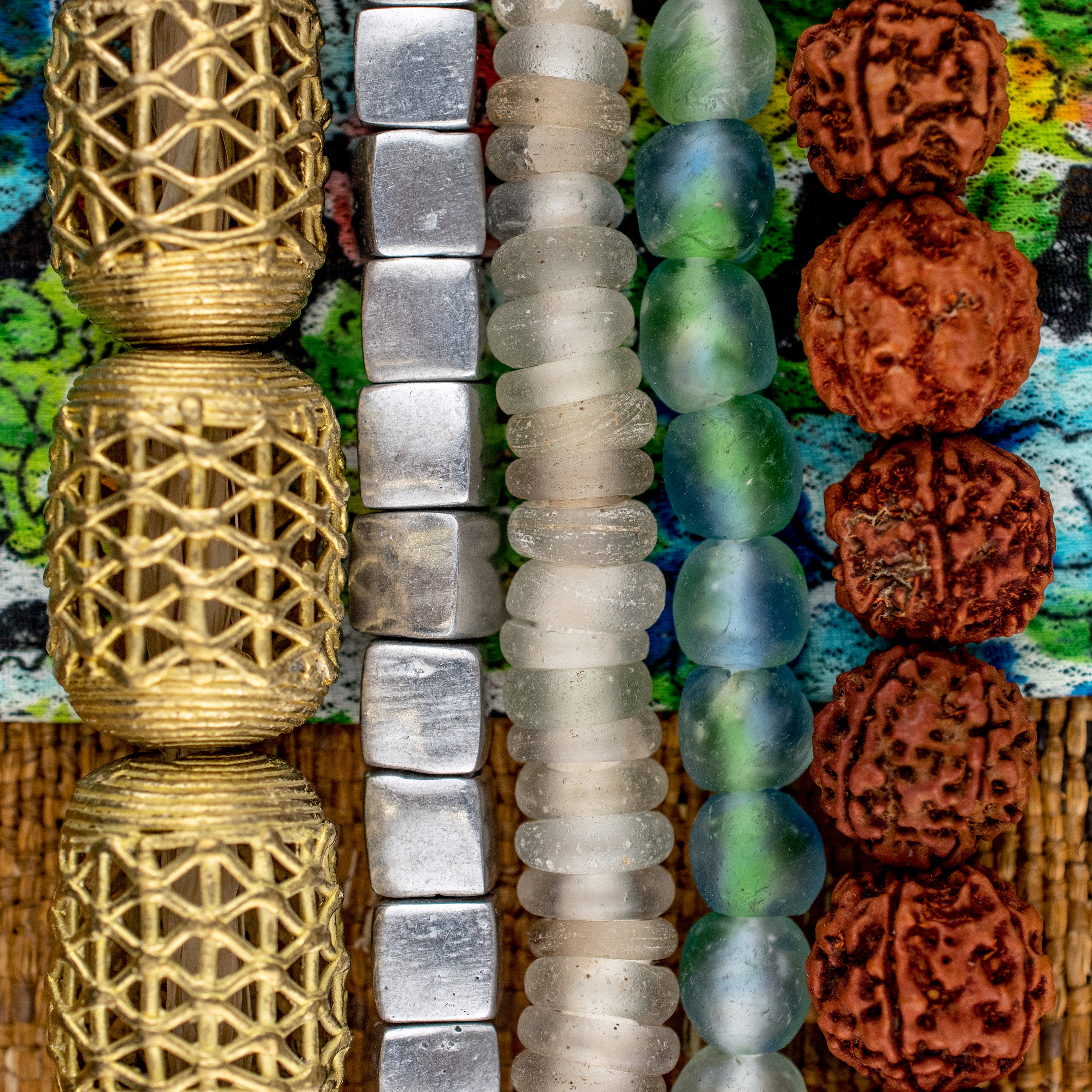 Light Blue Green Swirl Recycled Glass Beads (11mm)