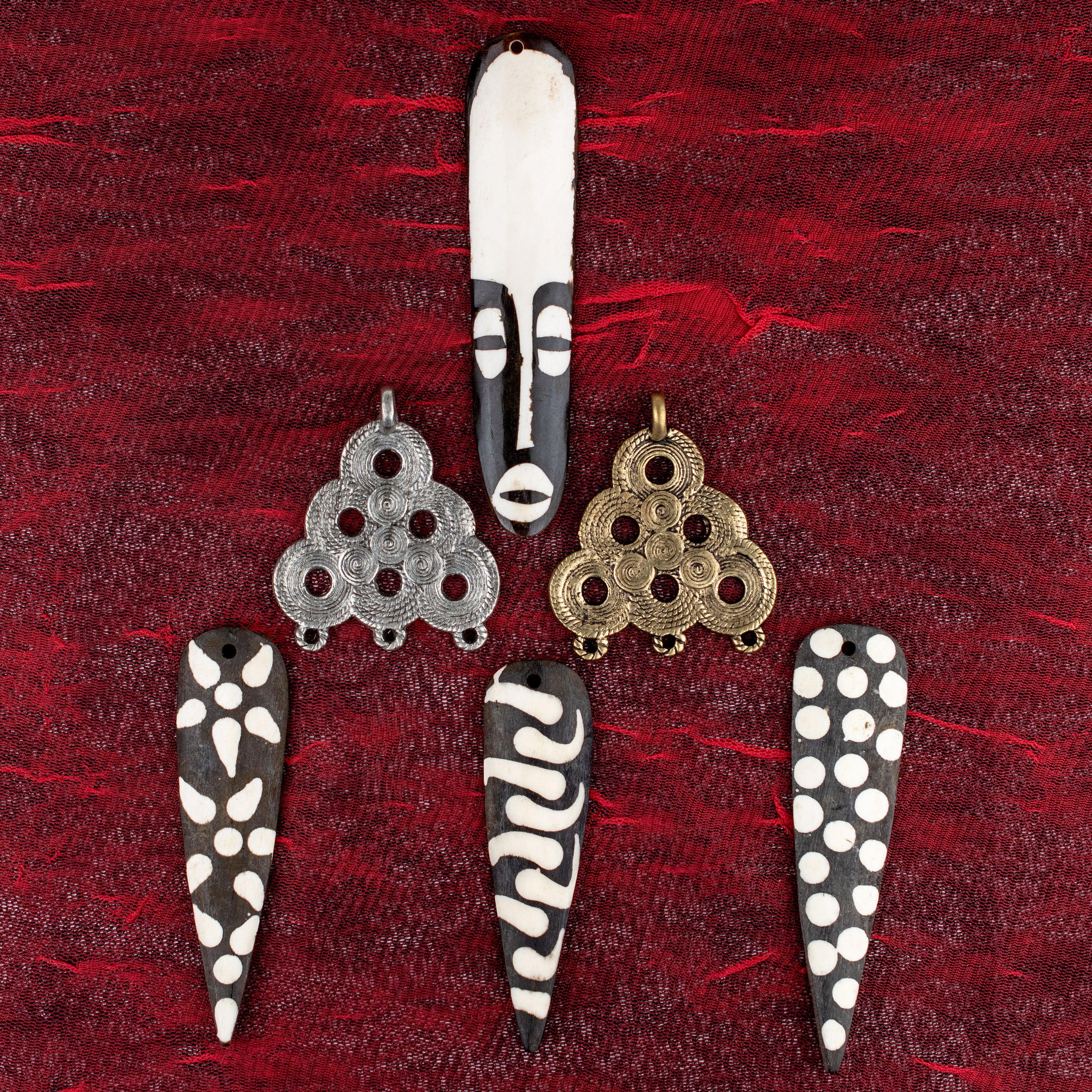Batik Bone Polka Dot Feather Pendants (Set of 2)