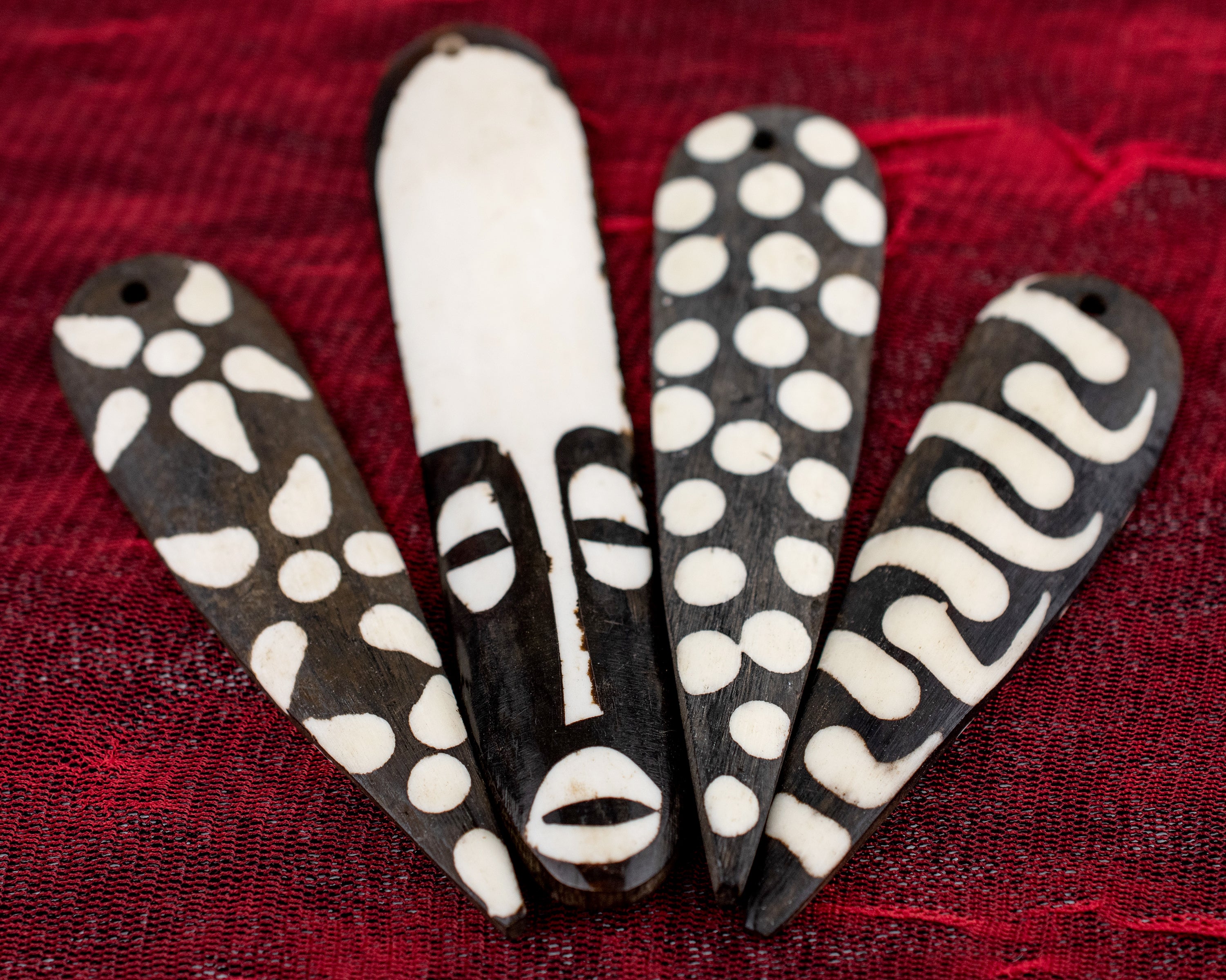 Elongated Mask Batik Bone Feather Pendant (100x22mm)