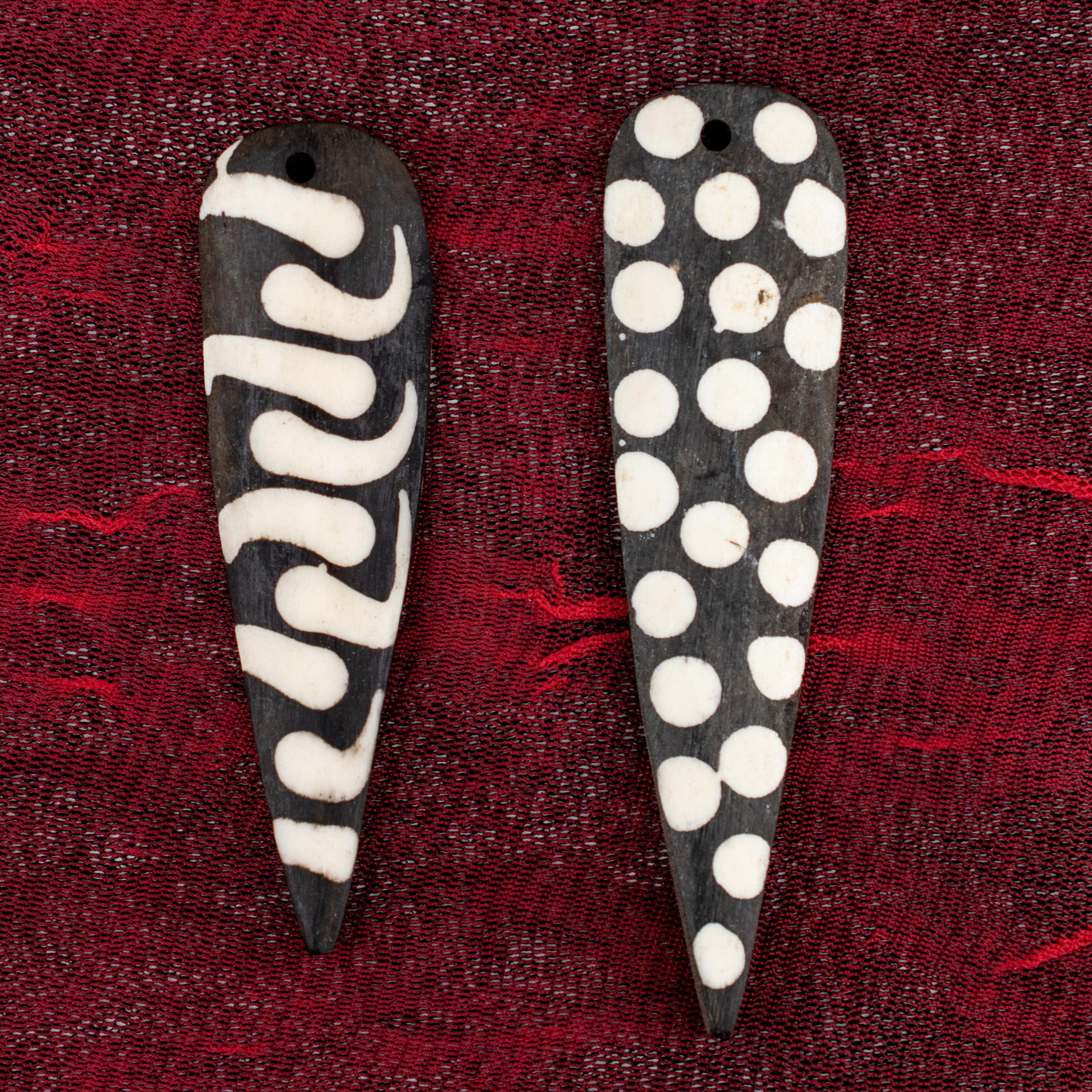 Batik Bone Polka Dot Feather Pendants (Set of 2)