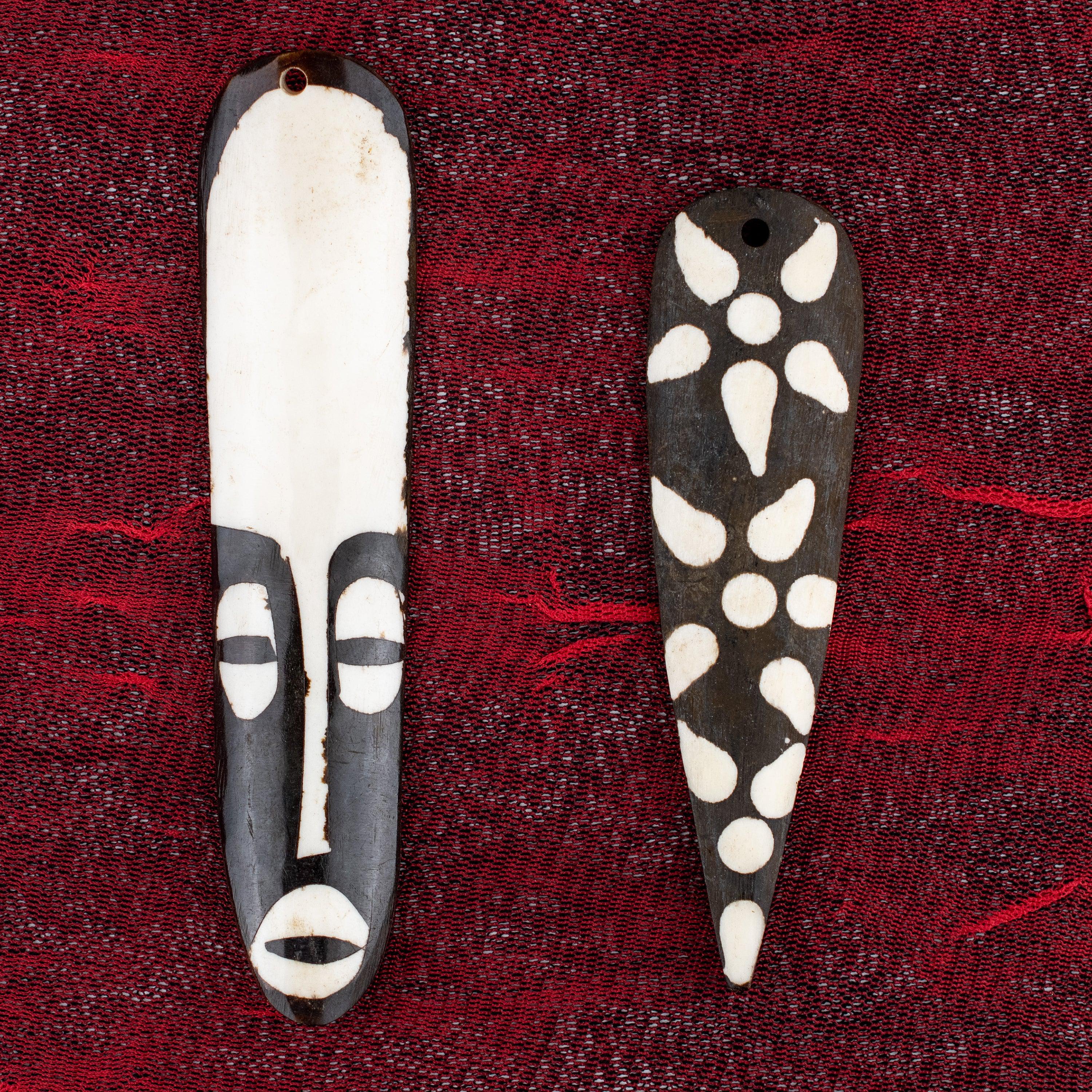 Elongated Mask Batik Bone Feather Pendant (100x22mm)