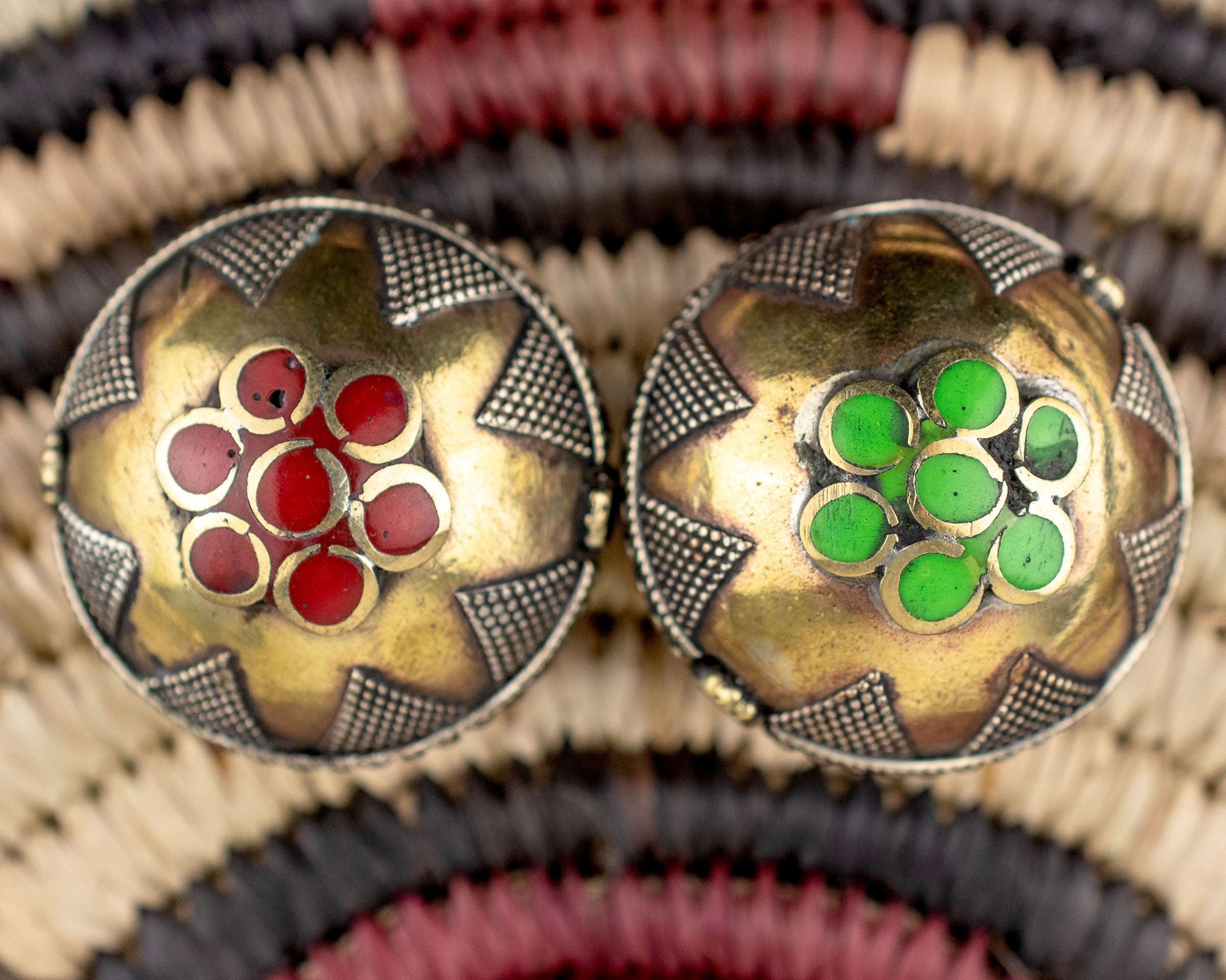 Bright Green Round Inlaid Afghan Brass Bead Pendant (36x28mm)