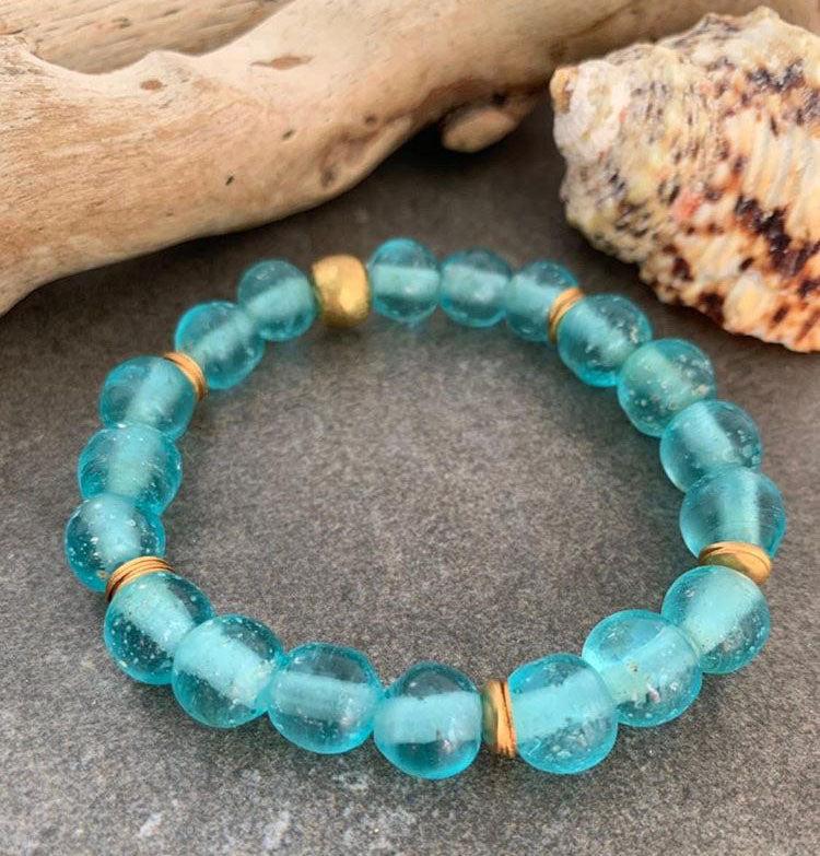 Clear Marine Ancient Style Java Glass Beads (9mm)