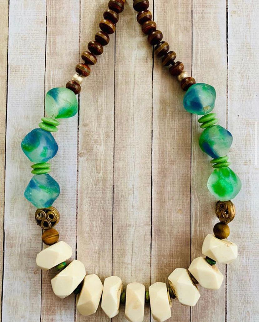 Jumbo Blue-Green Swirl Bicone Recycled Glass Beads (25mm)