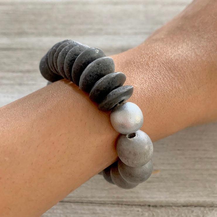 Dark Grey Ashanti Glass Saucer Beads (14mm)