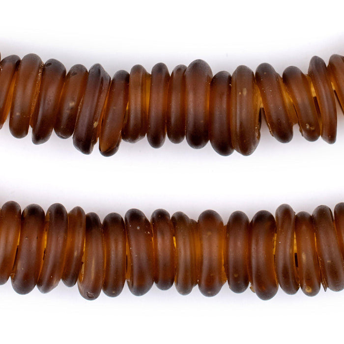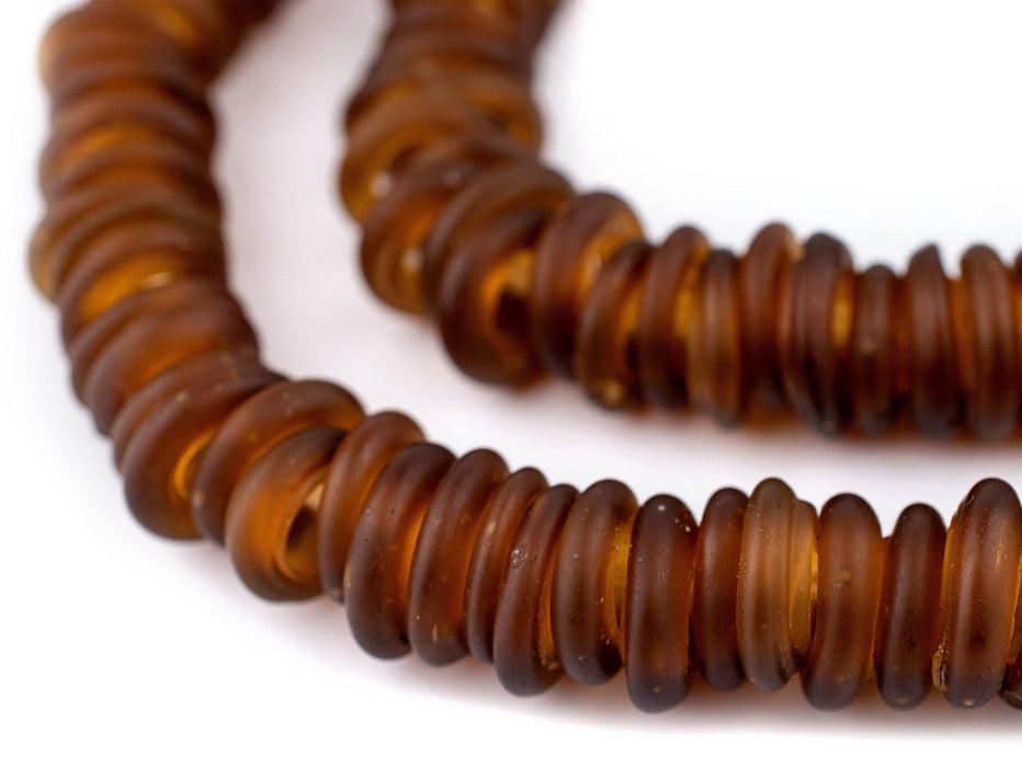 Take a look at this fabulous strand of annular wound trade beads also known as "Dutch Donuts." Trade beads like these have traveled multiple continents and have graced numerous owners. Beads may have small chips or corrosion due to their age and extensive use.