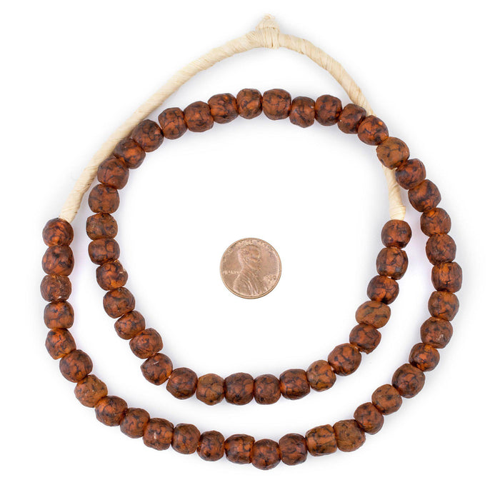 Amber Black Swirl Recycled Glass Beads (9mm)