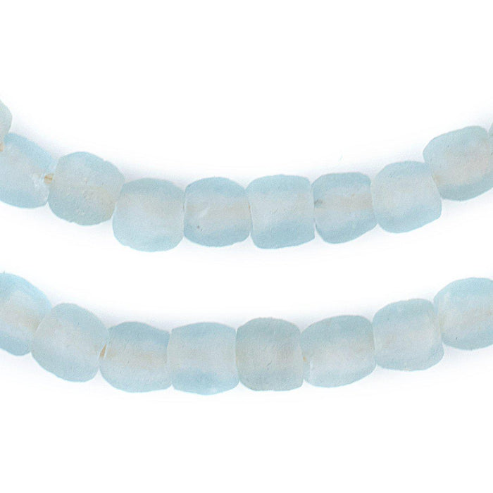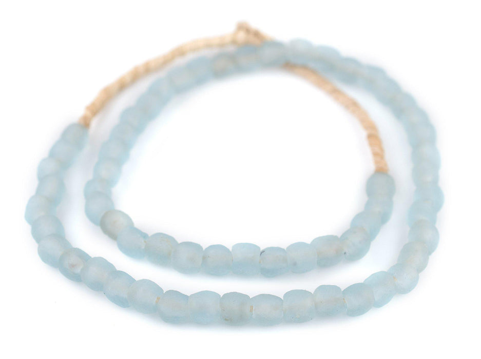 These beautiful recycled glass beads are handmade by artisans in the West African country of Ghana. Each bead is individually handcrafted through a traditional process passed down generation to generation. The steps involve crushing glass into tiny pieces, placing it in a mold, and then heating the crushed glass at high temperatures in a clay oven. Different types of glass are used including old cola bottles, broken tiles and windows, and other types of repurposed glass. The beads on this strand measure approximately 8-9 x 8-9mm with a hole size of approximately 2mm. Each strand measures about 24" long. Get your strand today!
