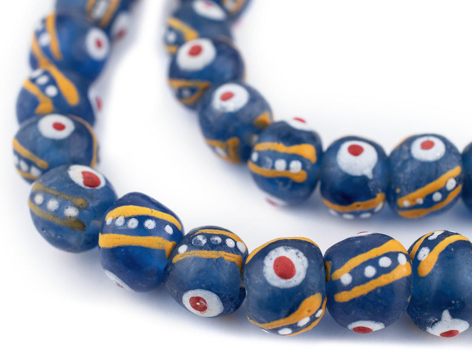 Venetian-Style Painted Blue Recycled Glass Beads (14mm)