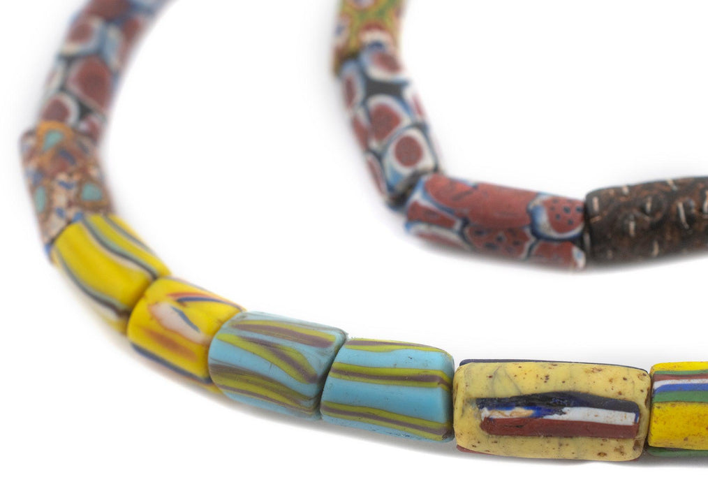 Take a look at this beautiful antique strand of Venetian Millefiori trade beads! Celebrated among the most distinctive of beads, the Millefiori has become nearly synonymous with the West African Trade. Made from famed Murano glass, Millefiori beads derive their name from the Italian words for “Thousand Flowers” due to the characteristic floral motifs that decorate their surface. Millefiori beads were made throughout the 19th and 20th century primarily for export to Africa. Today they are found in many countries including Ivory Coast, Nigeria, and Ghana where they are also known by their Ashanti name “Chachasao”. Most beads are commonly cylindrical in shape but other varieties exist including rectangular, oval, and sometimes even hexagonal beads. You will receive the exact strand pictured. Measurements are approximations.