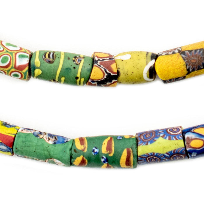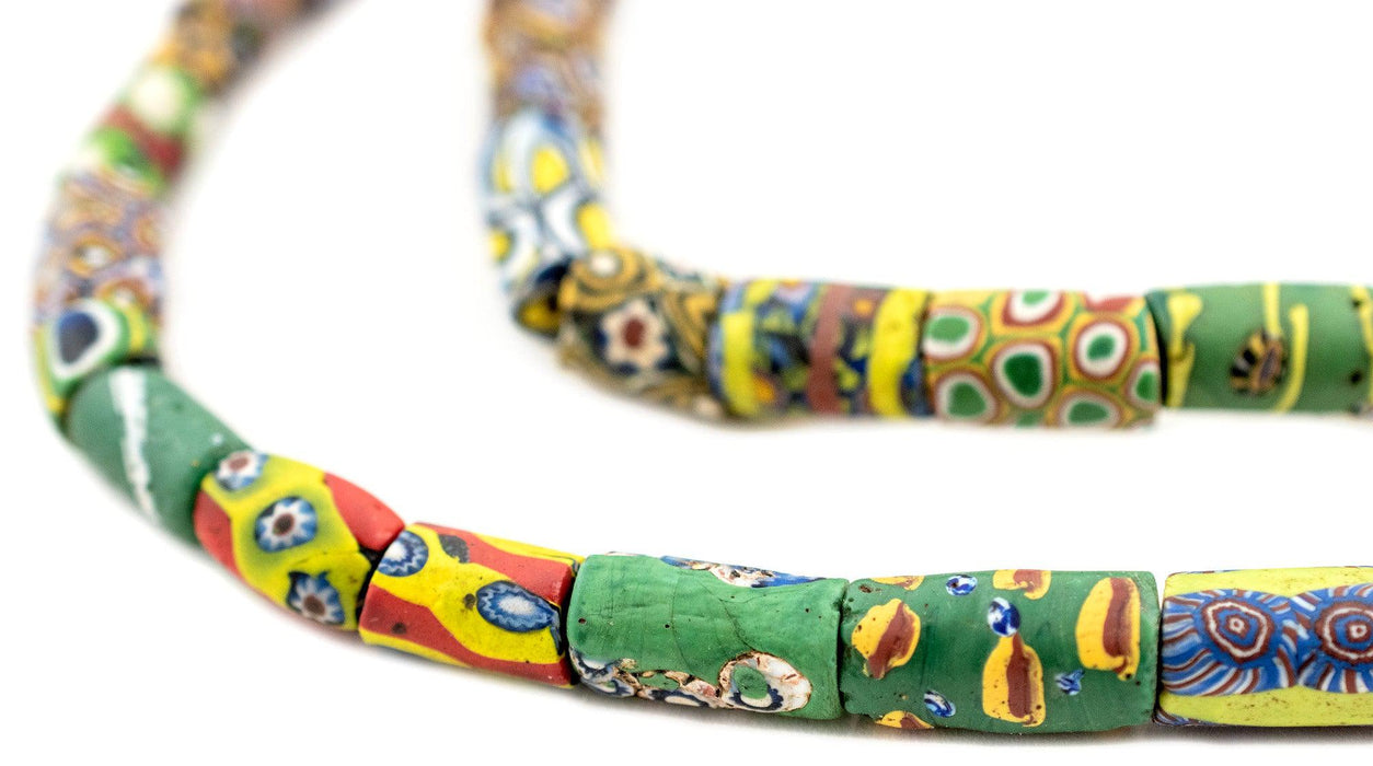 Take a look at this beautiful antique strand of Venetian Millefiori trade beads! Celebrated among the most distinctive of beads, the Millefiori has become nearly synonymous with the West African Trade. Made from famed Murano glass, Millefiori beads derive their name from the Italian words for “Thousand Flowers” due to the characteristic floral motifs that decorate their surface. Millefiori beads were made throughout the 19th and 20th century primarily for export to Africa. Today they are found in many countries including Ivory Coast, Nigeria, and Ghana where they are also known by their Ashanti name “Chachasao”. Most beads are commonly cylindrical in shape but other varieties exist including rectangular, oval, and sometimes even hexagonal beads. You will receive the exact strand pictured. Measurements are approximations.