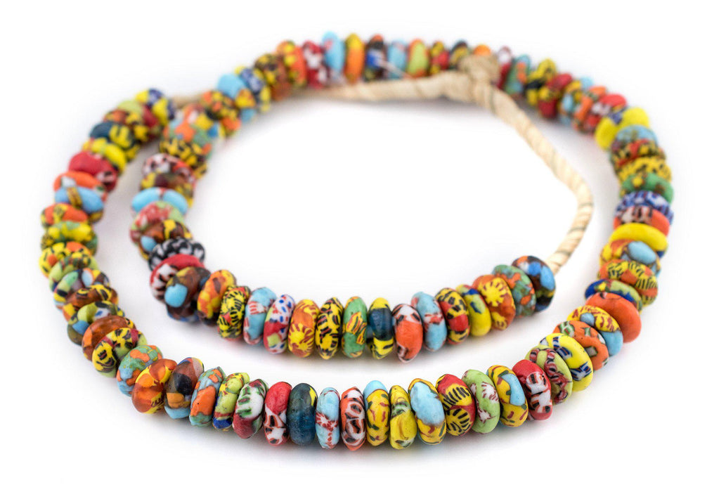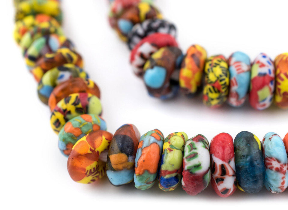 Bright Medley Fused Rondelle Recycled Glass Beads (14mm)