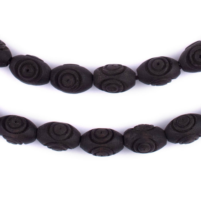 Carved Vintage-Style Oval Olive Wood Beads from Bethlehem (12x8mm)