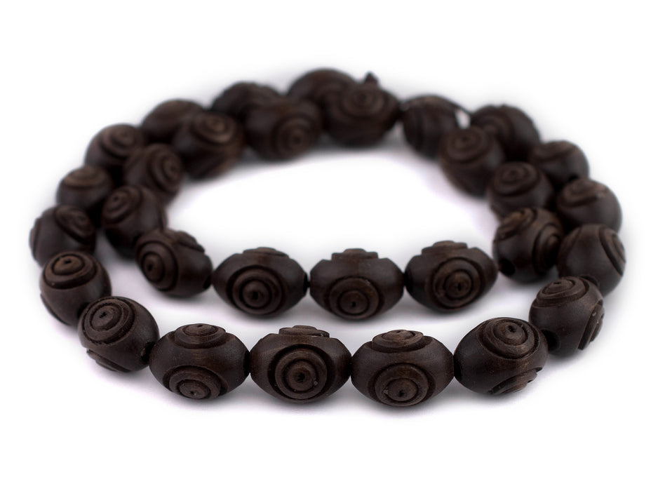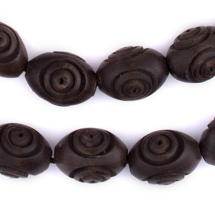 Carved Vintage-Style Oval Olive Wood Beads from Bethlehem (20x14mm)
