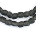Recycled glass beads are a type of indigenously produced African bead from Ghana West Africa. These beautiful black color recycled beads are made using an old method that has been used for centuries. The glass itself is derived from a variety of recycled sources including old beverage and medicine bottles. The procedure for making the beads consists of a number of steps whereby powdered glass is poured into molds of clay and baked in a specialized oven. These beads are produced in large part by the Krobo tribe and through recycling glass are environmentally friendly.