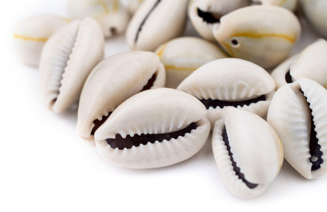 Beautiful set of drilled cowrie shells. Traditionally used in West African art and adornments. Great for jewelry making, crafts, and anything else you can imagine! You will receive approximately 50 grams of cowrie shells, which is approximately 21-23 shells. Each shell measures approximately 13-15 x 20-23mm with a 1mm drill hole. We carry these shells in three sizes (small, medium, and large), as well as non-drilled varieties. Shell size may vary from stated measurements. These measurements are only an estimation. Feel free to checkout our other listings as well!
