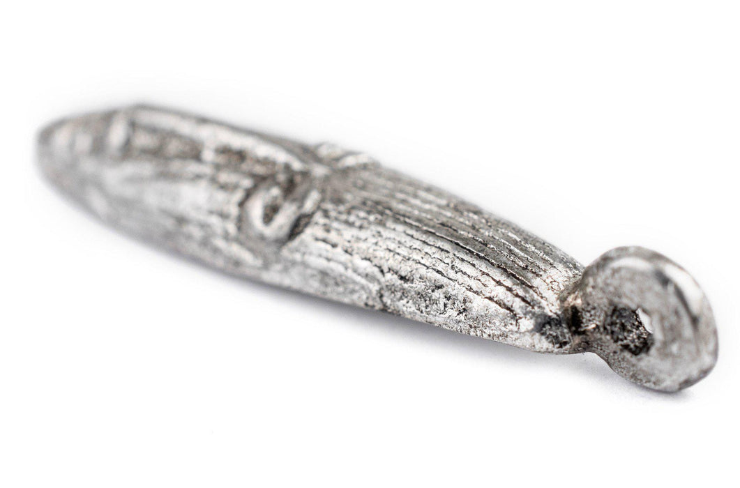 Elongated Silver Mask Pendant from Africa (9x40mm)