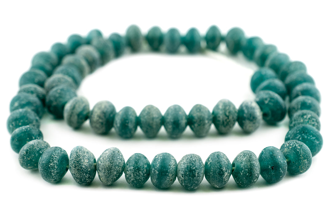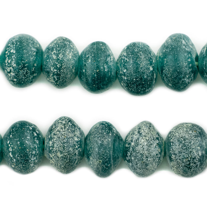 Green Aqua Ancient Style Bicone Java Glass Beads (15mm)
