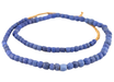 Among the most celebrated of faceted beads, Russian Blues derive their romantic name from their involvement in the Russian fur trade of the Pacific Northwest where they first appeared in the America’s during the early 1800’s. Inspired by faceted gemstone beads, the art of faceting glass was mastered by the artisans of Bohemia. There, as nowhere else in the Europe, the plentiful supply of running water supplied the energy necessary to operate the grinding wheels used to cut glass. These beads, designed for export were subsequently distributed to traders and found their way to both Africa and the Americas. Authentic Russian Blue beads such as these were produced in a number of shapes and shades, some more rare than others. Look carefully and you can see the unique quality of these hand-faceted beads apparent in the slight irregularity of the individual facets. The beads on this strand are an unusual rounded shape and measure approximately 5-7 x 6-8mm with 88 beads on the strand. This is a more unusual variety of Russian Blue beads that has more facets This is a unique one-of a-kind piece so you will receive the exact strand pictured. Don’t miss your chance to own this special piece of history today!