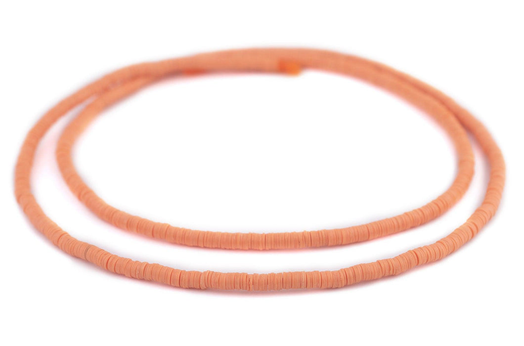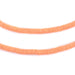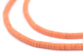 Take a look at this beautiful strand of peach colored African vinyl beads. Beads such as these are found in Ghana and Nigeria where they are sometimes worn as waist beads. Older versions of vinyl beads were said to be made from recycled phonograph records. This strand measures approximately 31" with individual beads measuring approximately 1 x 4mm. These beads are light, fun to wear and also versatile for jewelry designs. Each strand is sold individually.