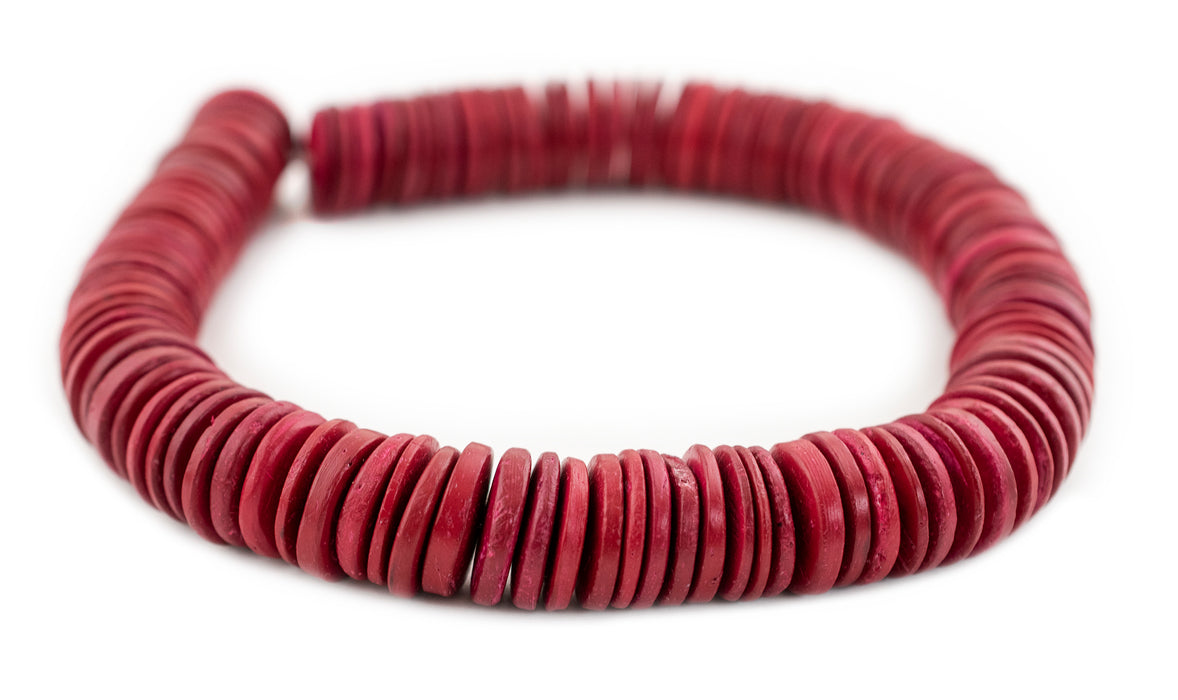 Our beautiful selection of coconut shell beads are handcrafted using natural coconut shell. Coconuts are an important fruit in many parts of Africa and Asia. Not only are they admired for their nutritious value, but also for the byproducts of the fruit itself. No piece is left to waste as the masterful artisans in our partnering workshops clean, dry, and cut beads out of raw coconut shell. Coconut beads are often appreciated for their light weight and natural look. On this beautiful 16" strand of beads, each bead measures approximately 2-4 x 20mm with a hole size of approximately 2mm. Browse our store and you will see these beads available in over 20 different styles, shapes, and colors. Get your coconut beads today!