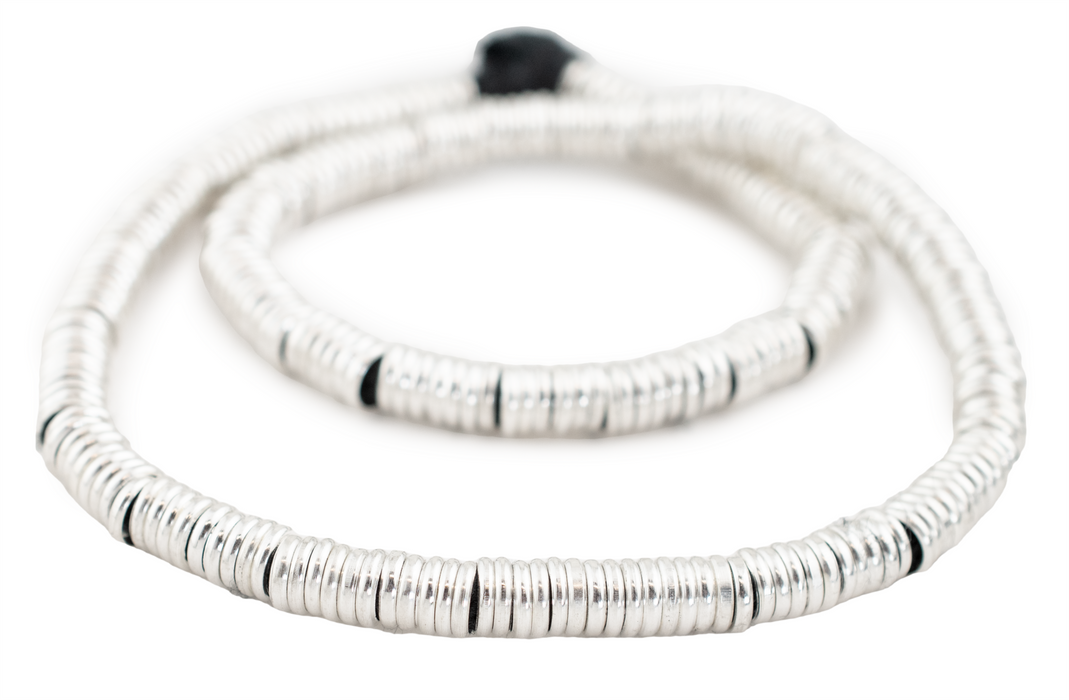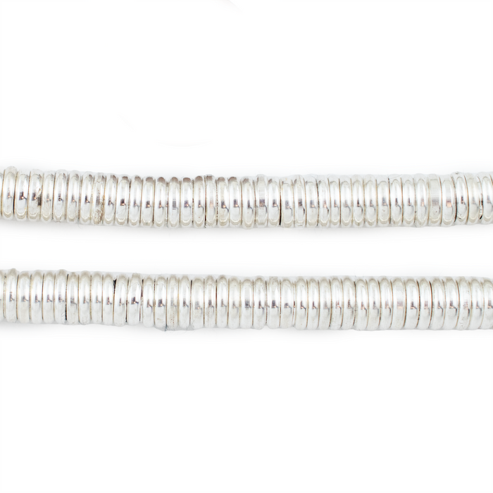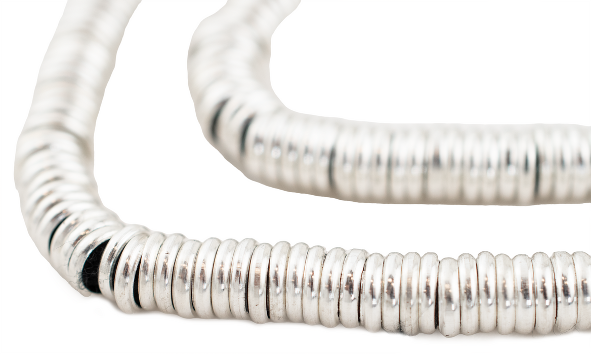Take a closer look at these brilliant Shiny Silver Ring Beads. These reflective silver rings beads exude a classic charm, making them an ideal choice as spacer beads in intricate design projects. Whether you're creating necklaces, bracelets, or earrings, these beads will add a touch of refined brilliance and depth to your jewelry designs. Each bead measures roughly 1.3 x 6mm with a large hole size of about 4mm. You will receive one full strand measuring approximately 16" in length. Add this staple bead to your design took kit today.