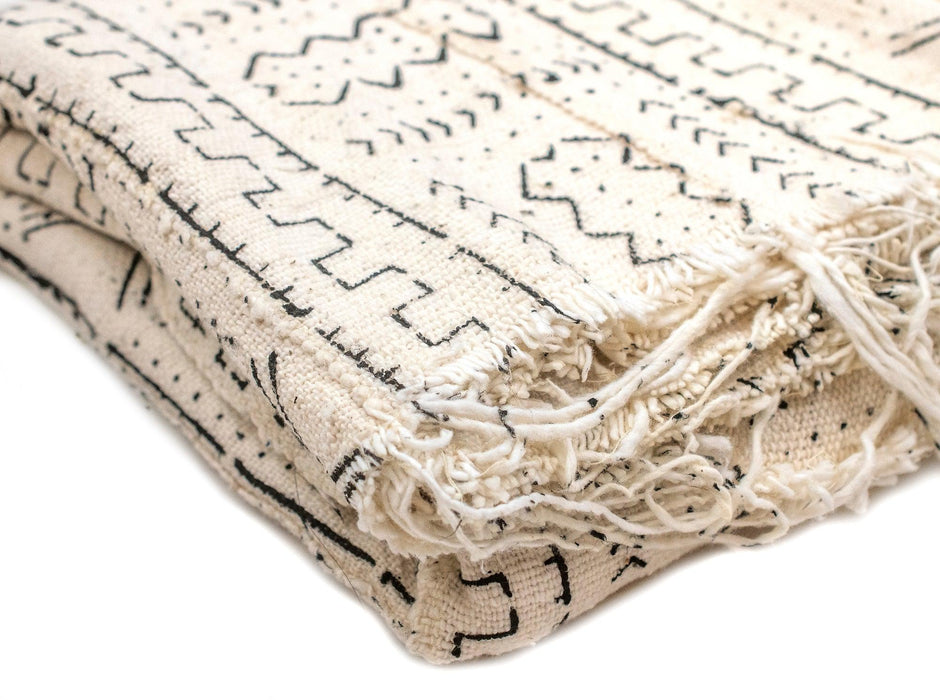 White Bogolan Mali Mud Cloth (Tribal Design)