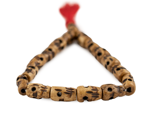 View full detailsGreat bracelet in a unique brown skull design. Made from natural water buffalo bone and finished with a colorful red tassel, each bead has been ind...