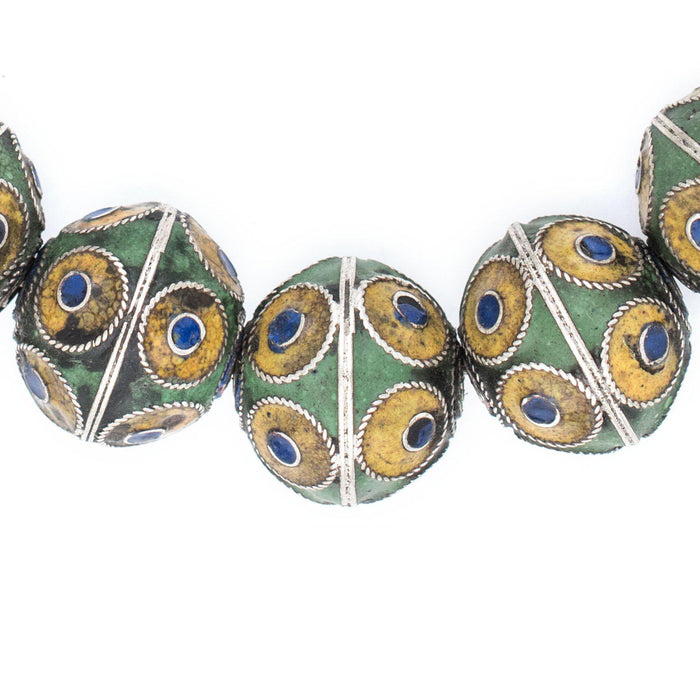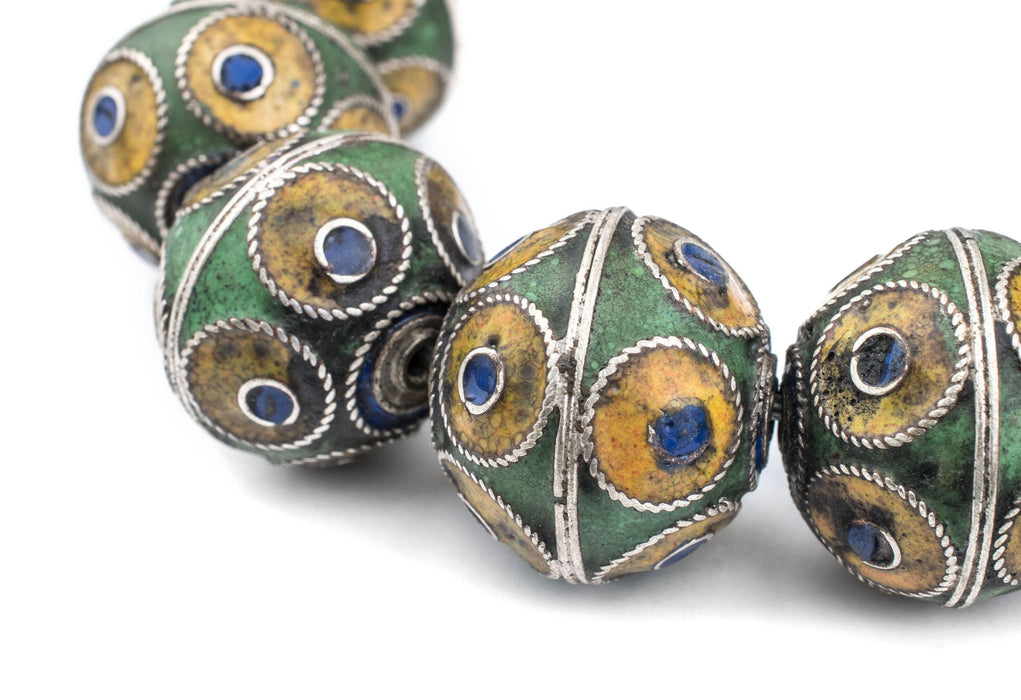 Artisanal Enameled Multicolor Silver Berber Beads