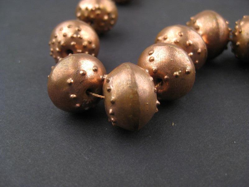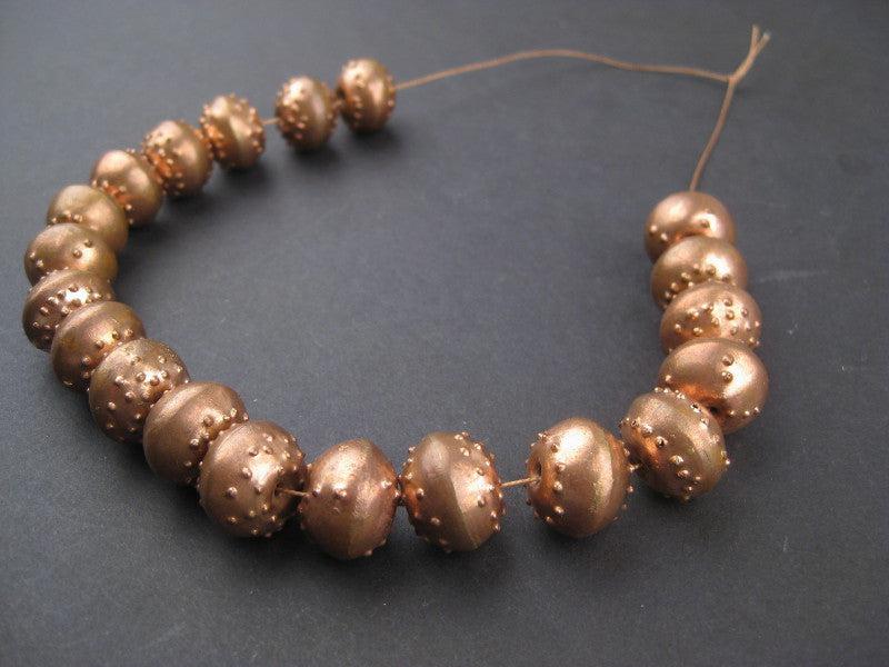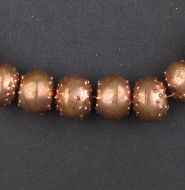 Patterned Copper Artisanal Ethiopian Bicone Beads (12x16mm)