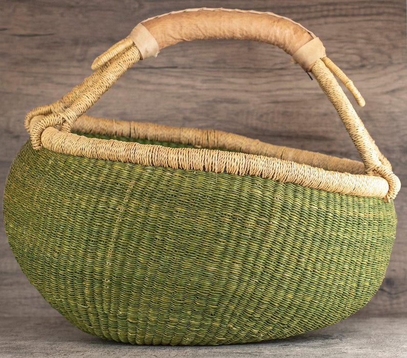 Ghanaian Bolga Basket, Olive Green, Large Size