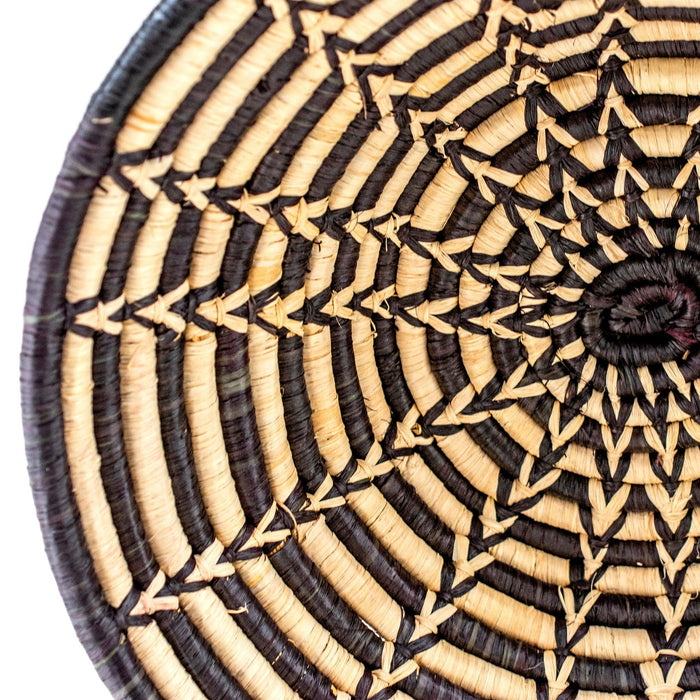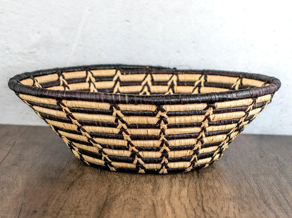 Take a look at this lovely woven basket. Woven out of Napier grass, also commonly referred to as Elephant grass, the material for these beautiful baskets is plentiful and fast growing, making basket-weaving an easy tradition for local craftspeople. Each Ugandan basket we sell is handcrafted by a talented artisan, and dyed in elegant designs. These baskets are great as home decor items. Each basket measures approximately 12 to 14 inches in diameter. Every basket is unique and may vary slightly from the photo. Add this unique piece to your home today!