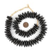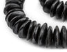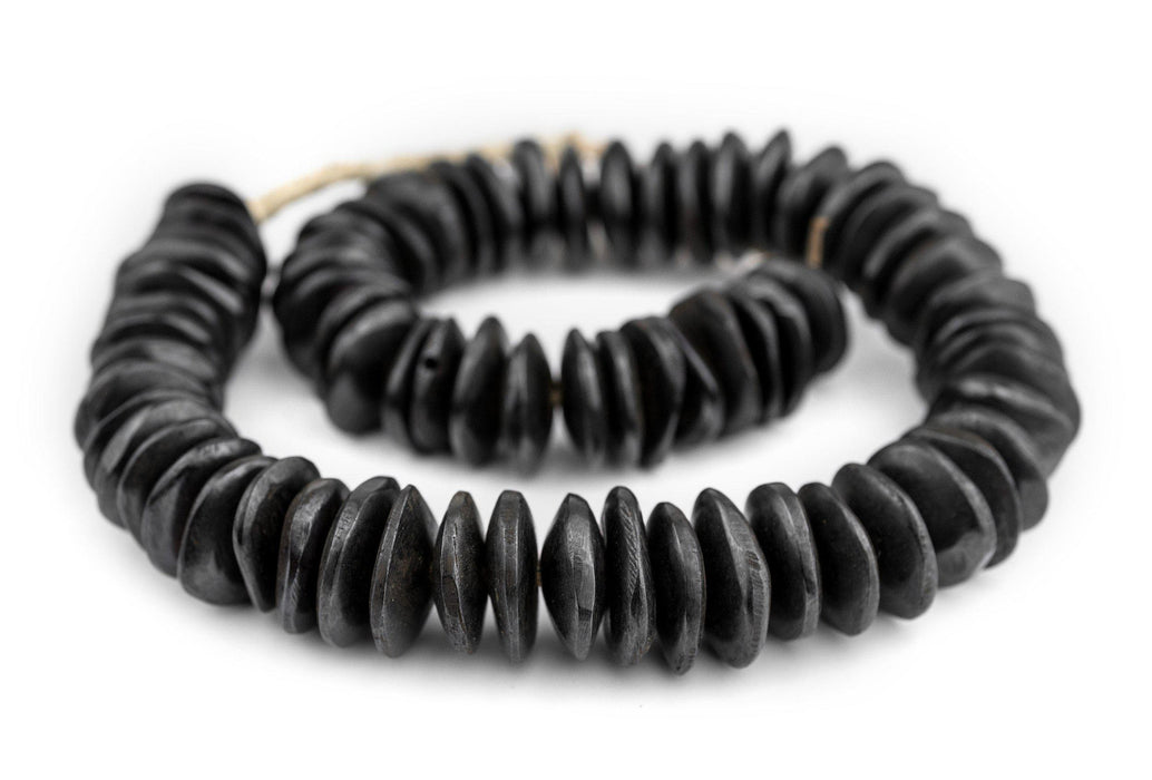 Admire this unusual strand of bone beads from Kenya. While Kenyan bone beads are common in a variety of shapes and styles, these beads come in a hard-to-find disk shape. East African bone beads are handcrafted by artisans using recycled cow bone. Each bead is individually carved and polished, and is truly one of a kind. These beads measure approximately 6-8 x 18-23mm, with a hole size of 2mm. Strands measure approximately 25", and have approximately 70 beads each. Actual color may be a very dark shade of brown. These are a great find for any beader looking to do something truly unique with their work!