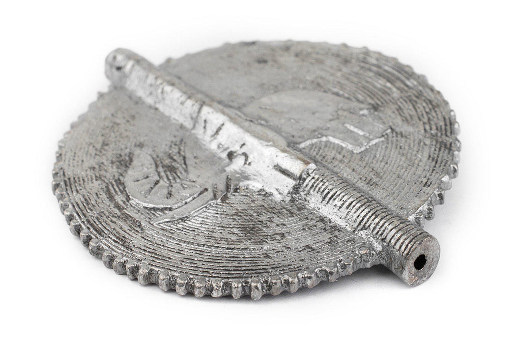 This beautiful silver bead is hand casted in the design of the traditional "Baule sun" from the Ivory Coast. Increasingly difficult to find, Baule (also known as Baoule) tribal beads are some of the most unique casted beads from West Africa. Each bead measures approximately 75 x 65mm, with a hole size of approximately 2mm. We've partnered with a special workshop to bring this unique treasure to you. Pay close attention to the detail and note the high quality finish of this special bead. Great as a pendant centerpiece on your next jewelry design!