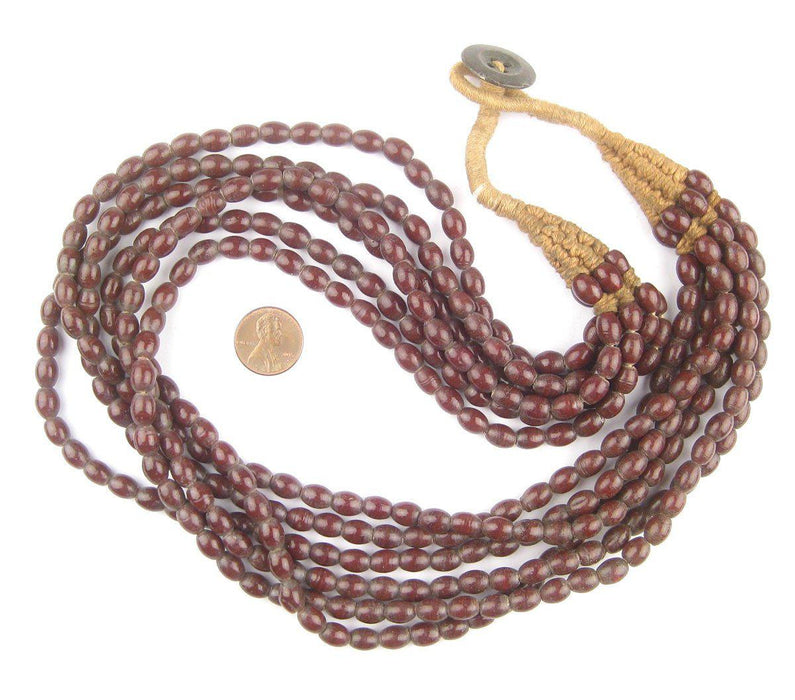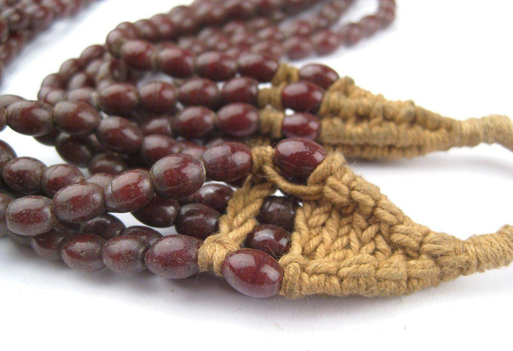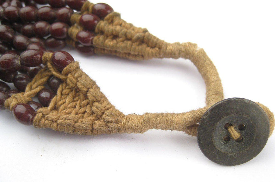 This beautiful vintage necklace, made from brown color glass, is from the Naga region of Northern India. These beads are from an older stock and the color and uniqueness of the individual pieces has an authentic handmade feel evident in the texture of the glass. Each necklace is comprised of more than 300 beads that have been set together with a woven faster and a vintage button. Ready to wear 'as-is' or use the ample beads in your own unique designs. A small number of beads may be broken due to age and wear. Limited supply!