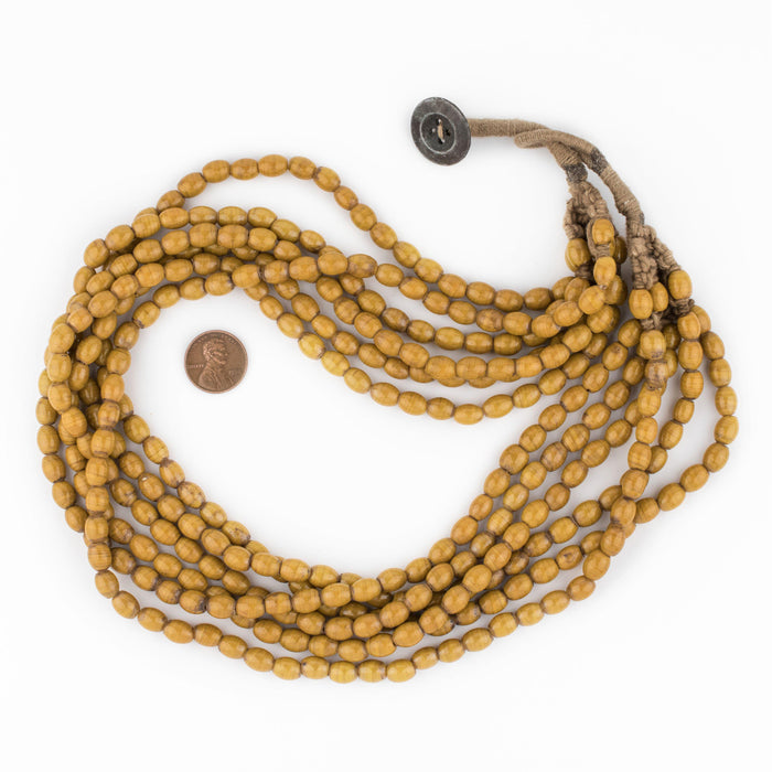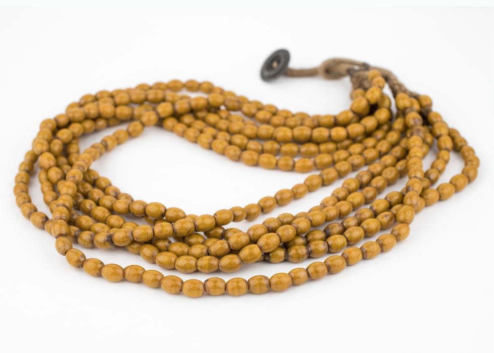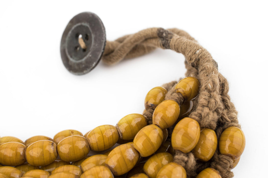 This beautiful vintage necklace, made from turquoise color glass, is from the Naga region of Northern India. These beads are from an old stock and the color and uniqueness of the individual pieces have an authentic handmade feel evident in the texture of the glass. Each necklace is comprised of as many as 330 beads that have been set together with a woven faster and a vintage button. Ready to wear "as-is" or use the ample beads in your own unique designs. A small number of beads may be broken due to age and wear.