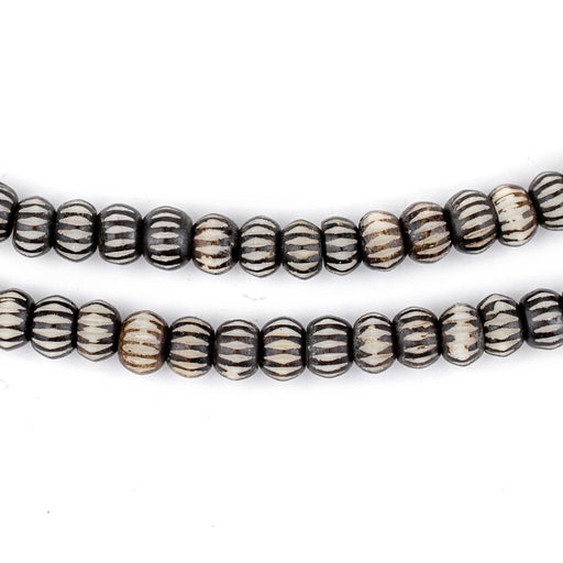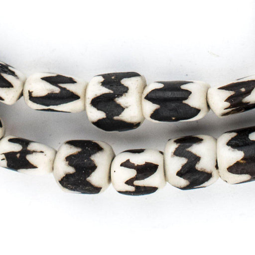 African bone beads come from Ghana, Africa. The design on the black and white bone beads is created through a dying method known as "batik", which is a wax relief process. These