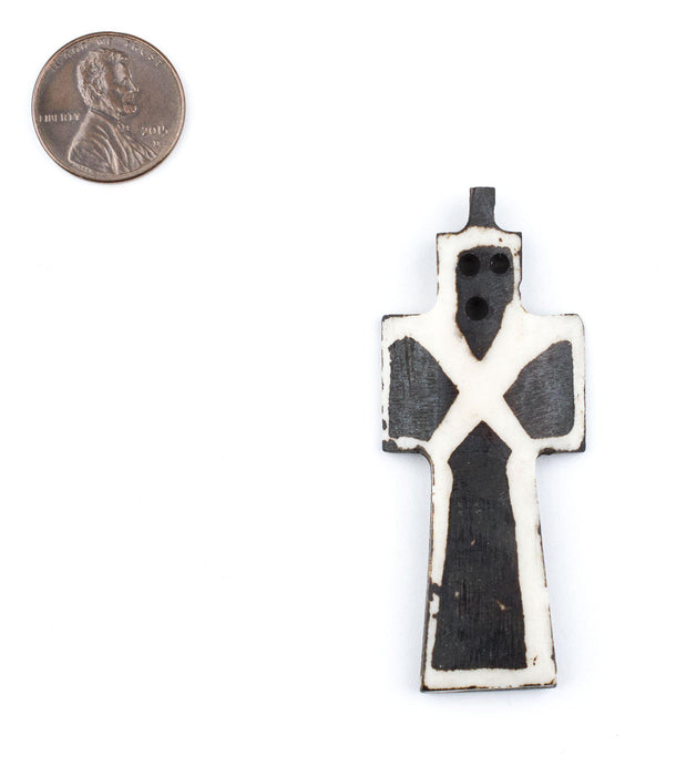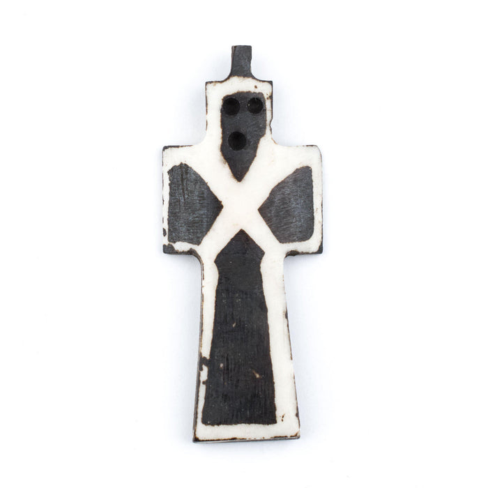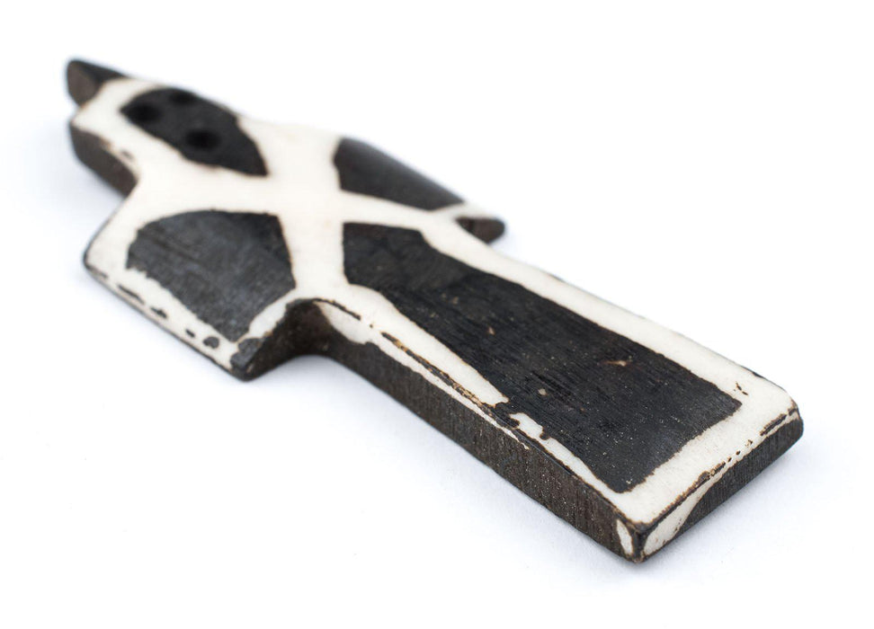 Admire this beautiful African cross pendant made out of recycled Zebus bone. Each pendant is designed and dyed by hand using the traditional "batik" method which has been used in East Africa for centuries. The cross measures approximately 56 x 25mm in size, and has a hole size of 1mm. Can easily be strung on a chain or string and be worn as a necklace, or be incorporated into more complex jewelry designs. Get yours today!