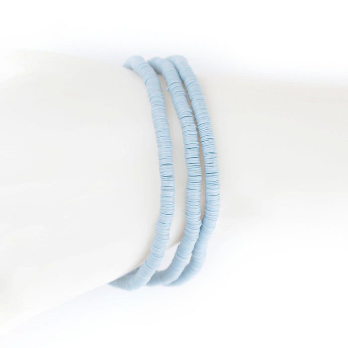 This beautiful piece of jewelry is made using vinyl beads, which are traditional to Ghanaian culture. While vinyl beads are most commonly worn around the waist, these beautiful bracelets pay tribute to West African culture while taking on a more versatile use. Each set of beads is strung on an elastic cord which will stretch over your wrist or ankle. The bracelet has an outer diameter of approximately 7.5 inches. Multiple bracelets may be pictured, however each bracelet is sold individually. Available in twenty different colors. Mix and match your favorite colors to create your own personal stack! The beads can also be repurposed into your own jewelry creations. They measure approximately 4mm in diameter with a hole size of approximately 1mm. Get yours today!